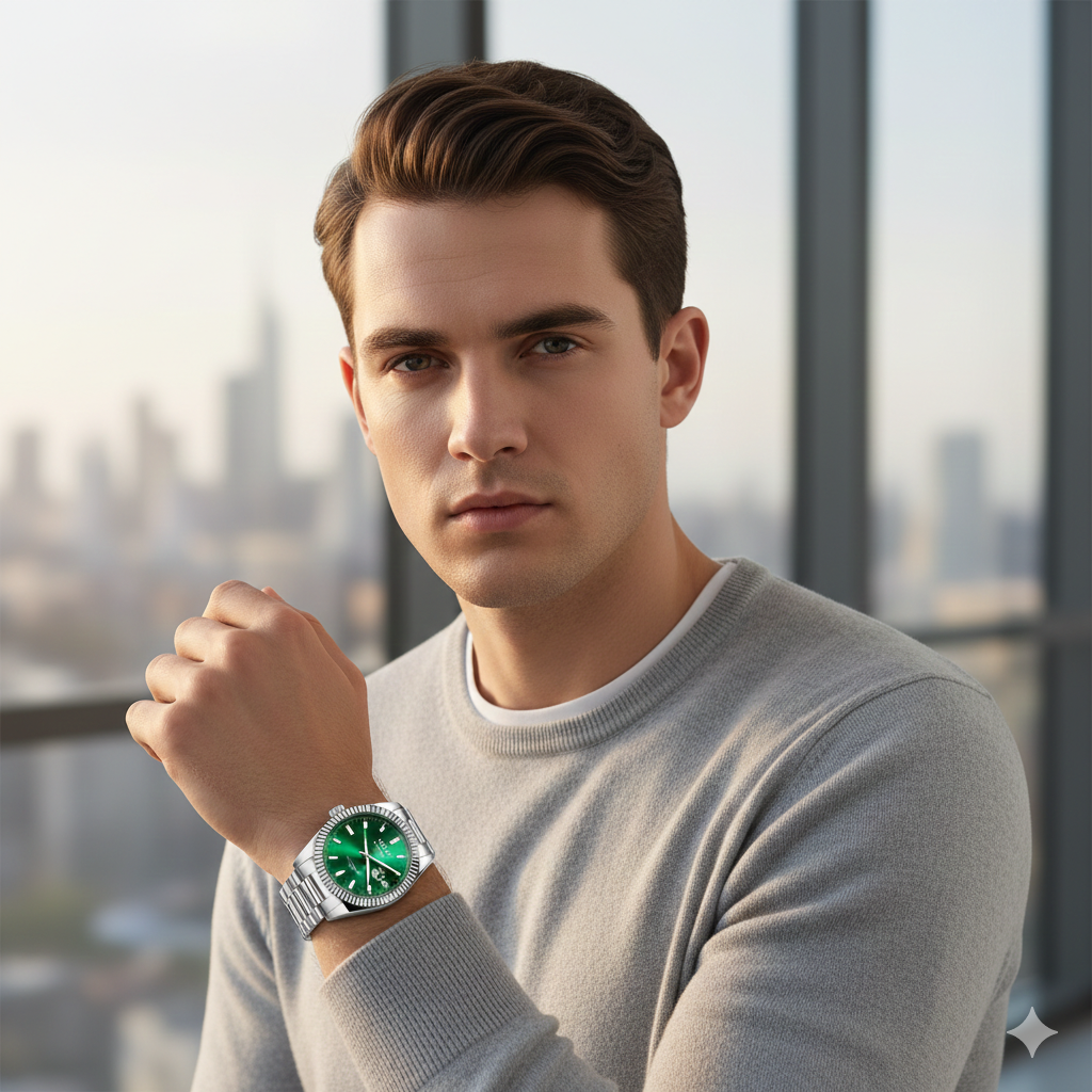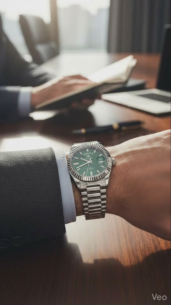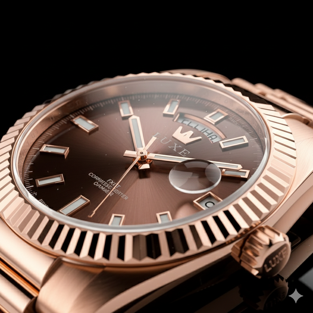 L'Orenth - Apex n'est pas simplement une montre, c'est un insigne. Arborant un boîtier en or rose brossé aux nuances chaudes et un cadran chocolat soleillé, elle incarne l'équilibre parfait entre l'autorité et le raffinement. Sa lunette cannelée emblématique capte chaque rayon de lumière, tandis que son bracelet présidentiel assure une présence indéniable au poignet. Conçue pour ceux qui exigent la précision d'un mouvement automatique et la clarté d'un calendrier complet (jour et date), l'Apex est le point culminant de l'horlogerie moderne accessible.